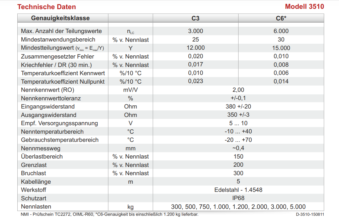 xVb廣州南創(chuàng)電子科技有限公司德國SOEMER 3510系列稱重傳感器技術參數: