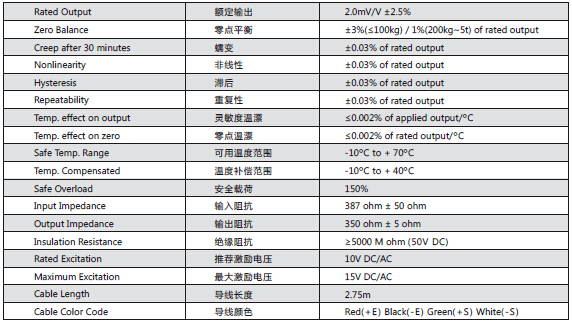 美國傳力Transcell CR系列稱重傳感器所有量程如下:weW廣州南創(chuàng)電子科技有限公司