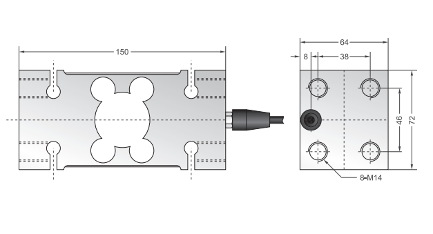 C08廣州南創(chuàng)電子科技有限公司美國傳力Transcell稱重傳感器尺寸圖:C08廣州南創(chuàng)電子科技有限公司