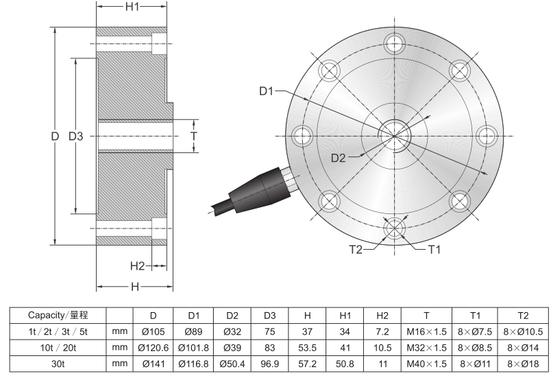 8Ob廣州南創(chuàng)電子科技有限公司美國(guó)傳力Transcell稱重傳感器DBSL-TJ-1t尺寸圖:8Ob廣州南創(chuàng)電子科技有限公司