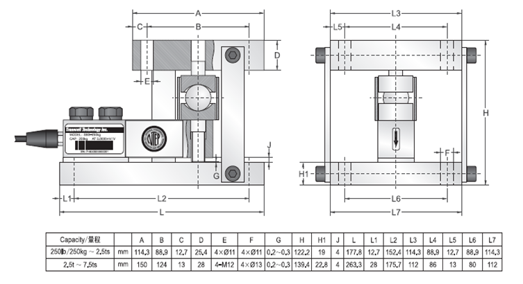ErP廣州南創(chuàng)電子科技有限公司美國傳力Transcell稱重模塊SBS-250LB MODULE技術參數(shù)圖: