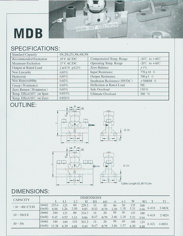 美國世銓celtron MDB-30T稱重傳感器技術參數(shù)圖: