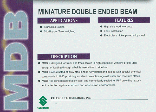 Celtron MDB雙剪切梁式稱重傳感器專為卡車和鐵路的低配置高容量規(guī)模設計。在裝載過程中不易受負載影響。