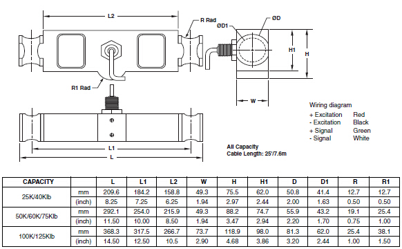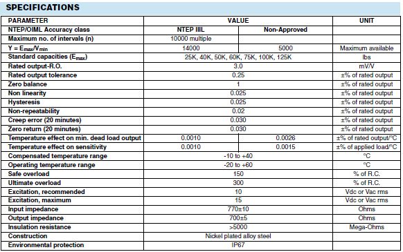 中心部分雙重連接剪切梁設(shè)計,可自由水平移動,傳感器負(fù)載不易受影響,NTEP Class lllL 10000認(rèn)證,可選FM相關(guān)認(rèn)證,有良好的防水防濕功能,保護(hù)等級為IP67。Celtron DLB-25klb稱重傳感器應(yīng)用于:車輛/鐵路稱重用,筒倉、漏斗、箱灌等稱重用,叉車秤。