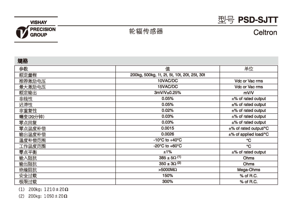 美國vishay celtron稱重傳感器PSD-200kgSJTT產(chǎn)品技術(shù)參數(shù):Ymf廣州南創(chuàng)電子科技有限公司