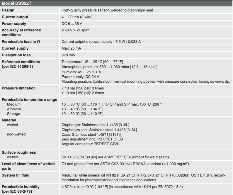 Transcell傳感器測(cè)量的力須是同軸的軸向力,威卡wika溫度控制器且不能承受側(cè)向力。必須在水平表面上安裝該壓