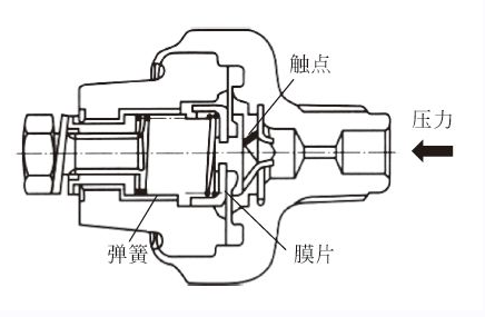 當(dāng)無機油壓力或低壓力作用時,彈簧推動膜片,觸點處于(ON)閉合狀態(tài);達(dá)到規(guī)定壓力時,膜片克服彈簧作用力,使觸點打開(OFF)。