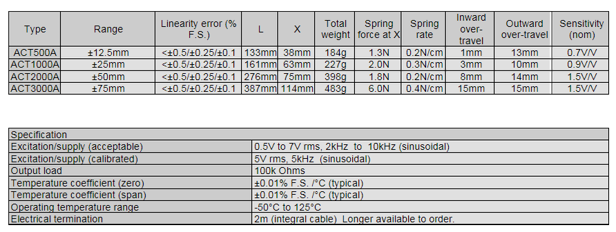 英國RDP ACT15000C位移傳感器系列位移傳感器所有量程如下: