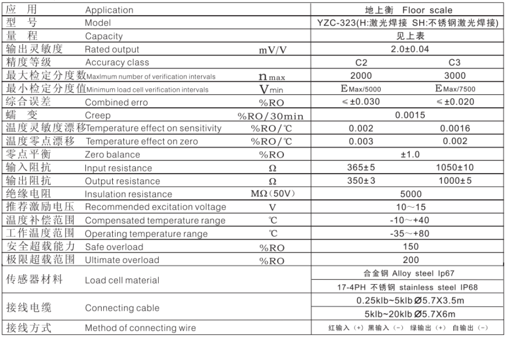 peQ廣州南創(chuàng)電子科技有限公司廣測GUANGCE YZC稱重傳感器技術參數(shù)圖: